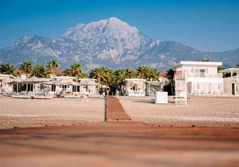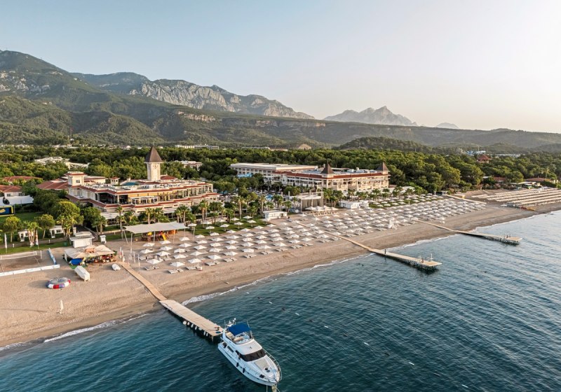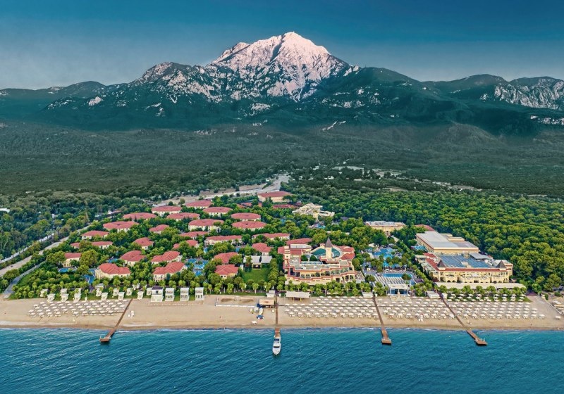 Gural Premier Tekirova empfängt Euch direkt am hoteleigenen Sand‑/Kiesstrand von Tekirova mit weitem Blick auf das Taurusgebirge. Das Gefühl: Weitläufigkeit und Struktur. Ihr bewegt Euch über 200.000 m² zwischen Gartenbereichen, ruhigen Zonen und lebendigen Treffpunkten. Zwei Süßwasserpools mit Sonnenterrassen rahmen Euren Tag am Wasser, Liegen, Auflagen, Tücher und Schirme liegen an Pool und Strand bereit.