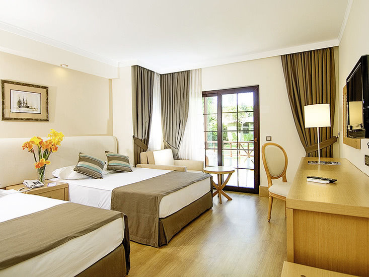 • Klimaanlage • Balkon (je nach Zimmerkategorie) • Kühlschrank • Haartrockner • Minibar (gegen Gebühr) • Safe • Schlafsofa • Kaffee-/Teezubereiter • Fernseher (Sat-TV) • WiFi • Terrasse