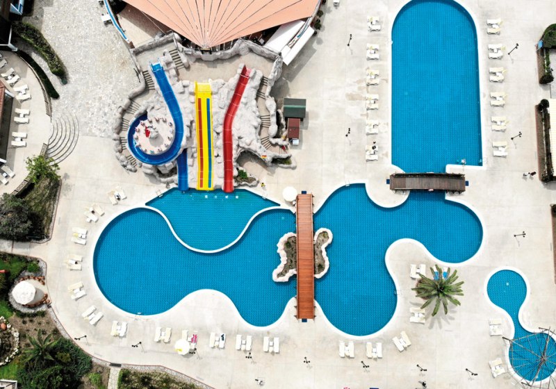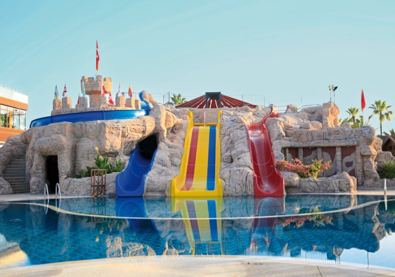 - Pooldreiklang: Zwei Pools plus Whirlpool und Rutschen schaffen Wasserabwechslung.