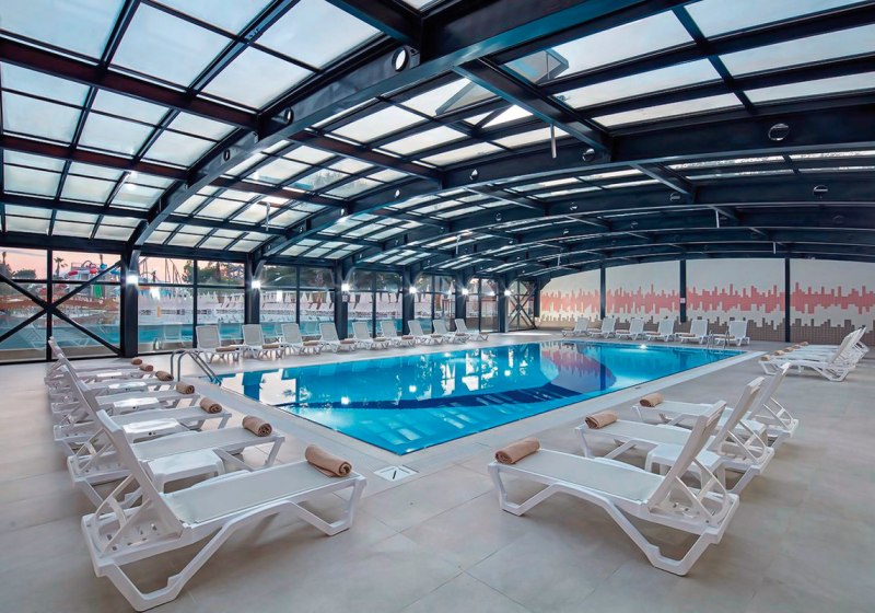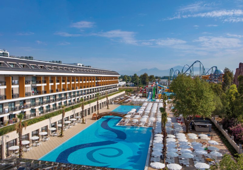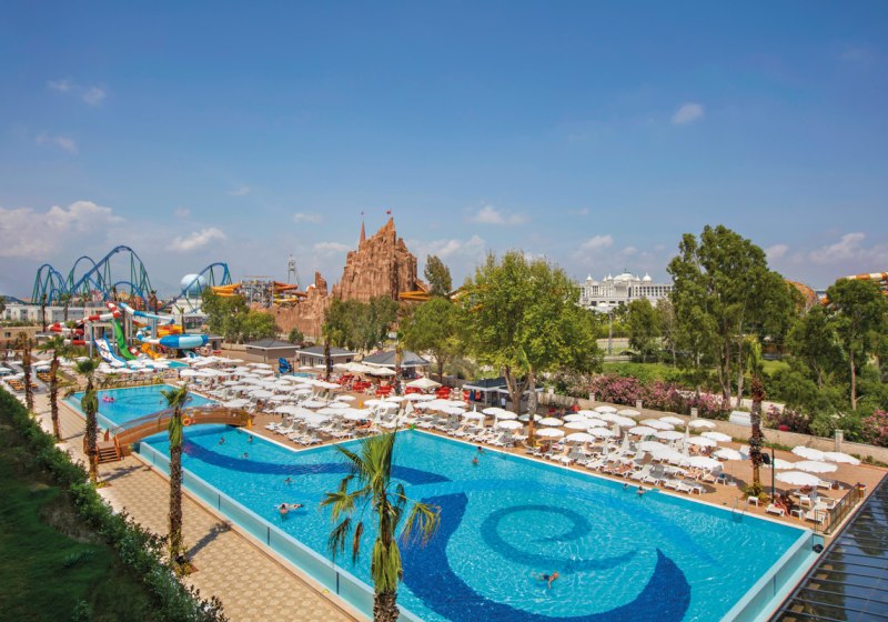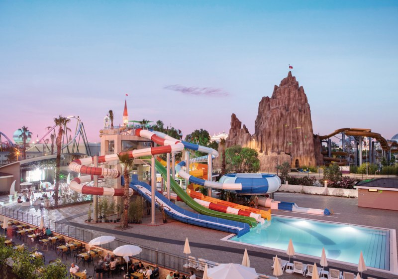 - Großer Wasserbereich: 941-m²-Pool, Rutschen und separates Kinderbecken.