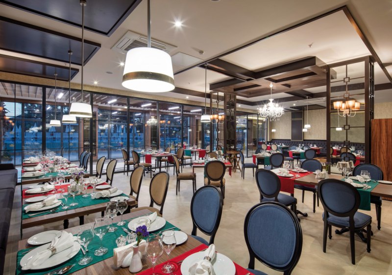• Café (Queens Cafe, nur für Gäste) • Restaurant (Monzu Main Restaurant, rollstuhlgeeignet, Buffet, keine bedrohten Fischarten, Klimaanlage, mit Außenbereich, Europäische Speisen, Fast Food, Fisch/Meeresfrüchte, Grill-/BBQ-Speisen, Halal-Speisen, internationale Speisen, lokale Speisen, Mediterrane Speisen, Pizza, Türkische Speisen, nur für Gäste, keine Haustiere erlaubt, im Hauptgebäude, keine Badebekleidung (Dresscode), familien- und kinderfreundlich) • Snackbar (Snack Bar, nur für Gäste) • Lobbybar (Name, rollstuhlgeeignet, 24h, Klimaanlage, mit Außenbereich, im Hauptgebäude, nur für Gäste)