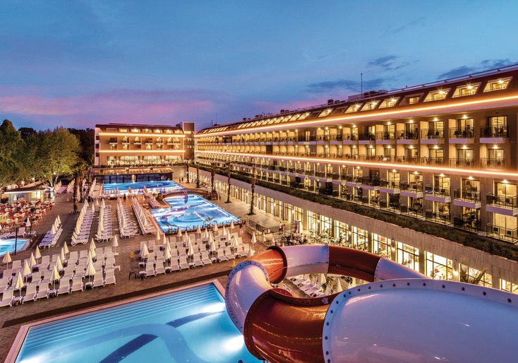 Aydinbey Queen's Palace & Spa verbindet nahe Strandlage, klaren Service und vielseitige Angebote. Mit großem Pool, Rutschen, Miniclub und strukturiertem Entertainment behaltet Ihr den Überblick. Kulinarisch bleibt Ihr flexibel zwischen Terrasse, Bars, Patisserie und Strand-Snackbar.