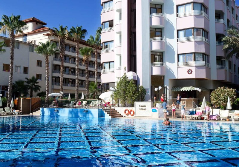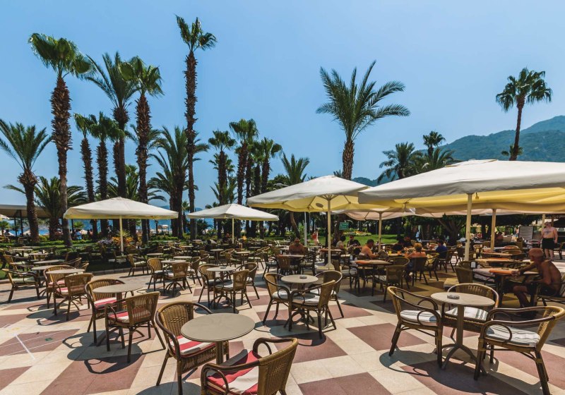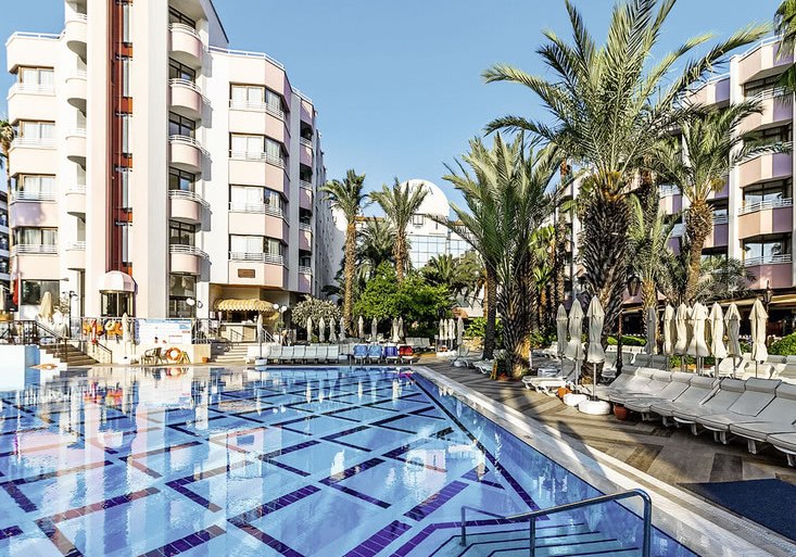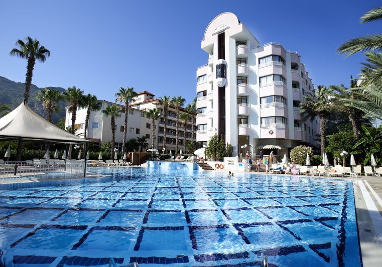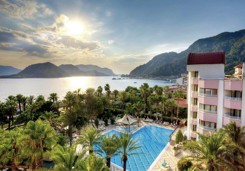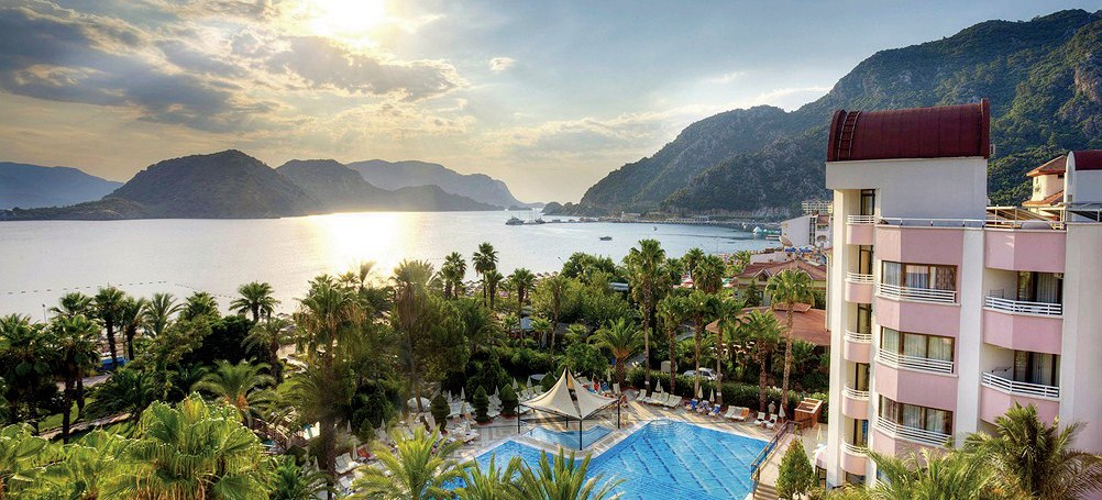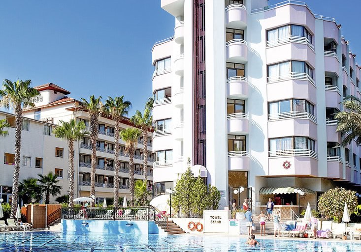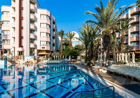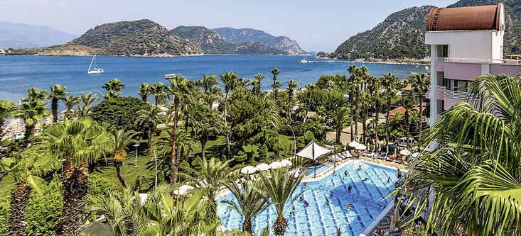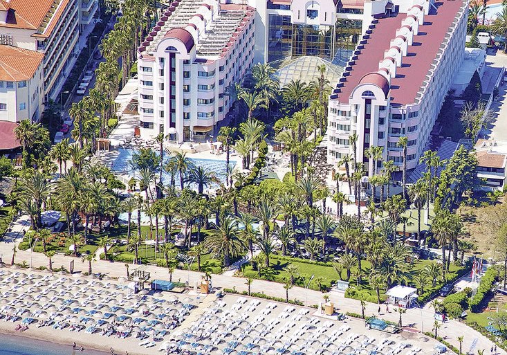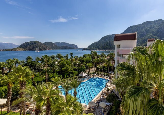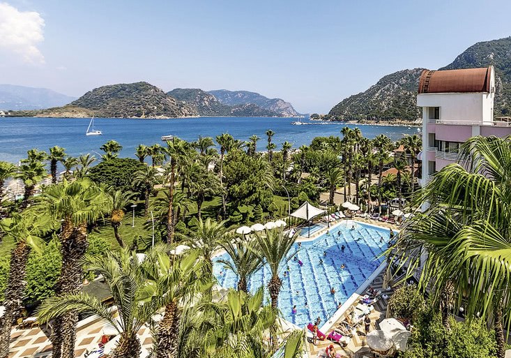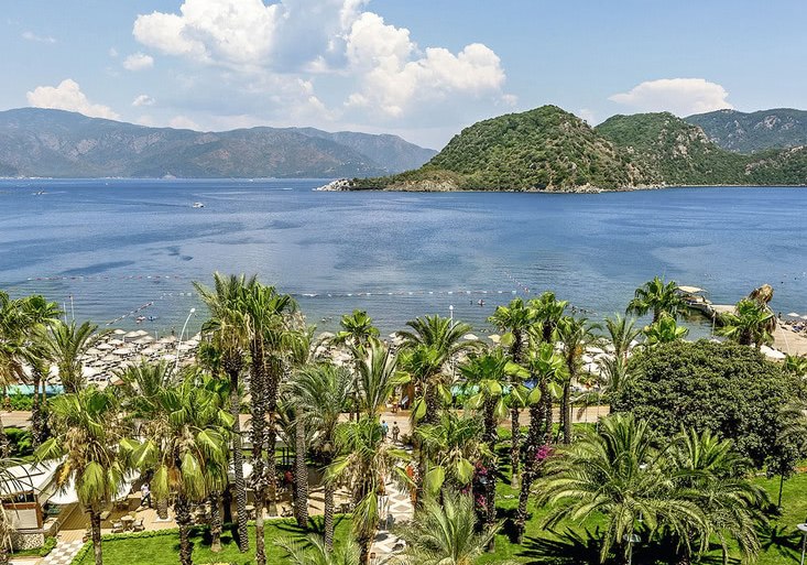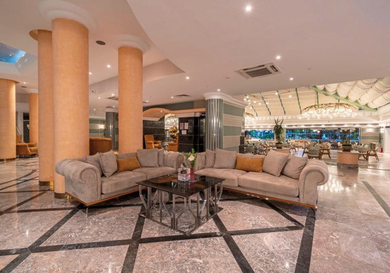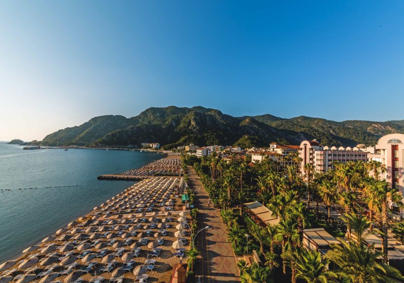 Im Hotel Aqua wohnt Ihr direkt am Strand von Içmeler, mit kurzen Wegen ins lebendige Marmaris. Die Atmosphäre wirkt entspannt und aufgeräumt: großzügige Lobbybereiche, grüne Gartenflächen und eine Süßwasser-Poollandschaft mit separatem Kinderbecken strukturieren Euren Tag. WLAN ist im gesamten Haus kostenfrei nutzbar. Highlight: Direkte Lage am Blauer-Flagge-Strand mit eigenem Abschnitt.