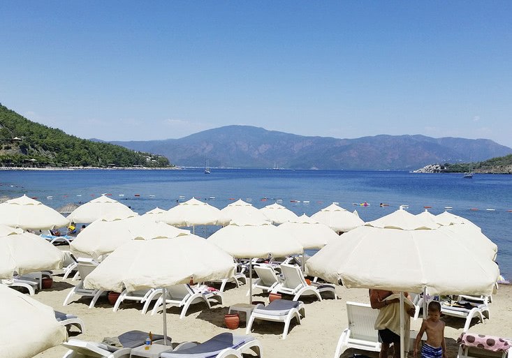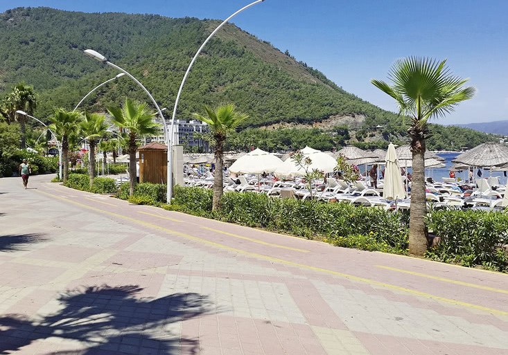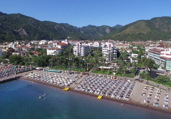 Ihr erreicht das Hotel Aqua in Içmeler direkt am Strand, nur etwa 7 km von Marmaris entfernt. Öffentliche Minibusse und Taxis warten vor dem Hotel – praktisch für spontane Ausflüge. Laut Angaben liegen Restaurants in rund 100 m, Einkaufsmöglichkeiten und Ortszentrum bei etwa 200 m. Highlight: Kurze Wege vom Zimmer an den Blauer-Flagge-Strand.