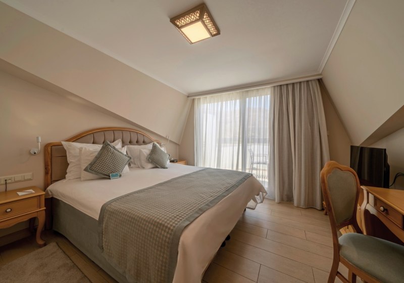 - Komfortausstattung: LED-Sat-TV, Tee-/Kaffee-Setup, Safe und Minibar.