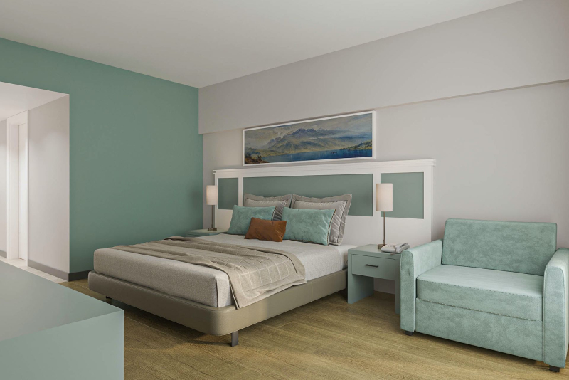 Die Zimmer im Hotel sind modern und bequem eingerichtet und bieten einen TV mit deutschen TV-Kanälen, eine Minibar, einen Safe und zentral gesteuerte Klimaanlage. Familienzimmer mit zwei Schlafzimmern sind ebenfalls verfügbar und bieten zusätzlichen Platz und Komfort.