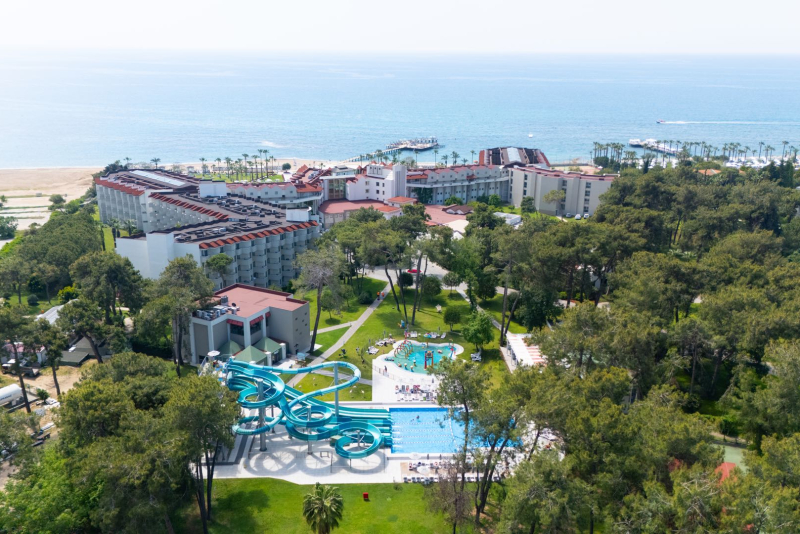Das Hotel bietet eine umfangreiche Ausstattung, darunter Geschäfte, eine Diskothek, Parkplätze sowie WiFi am Pool und in der Lobby. Im Außenbereich finden Sie einen großen Garten, eine Sonnenterrasse und einen erfrischenden Aquapark mit sieben Wasserrutschen.