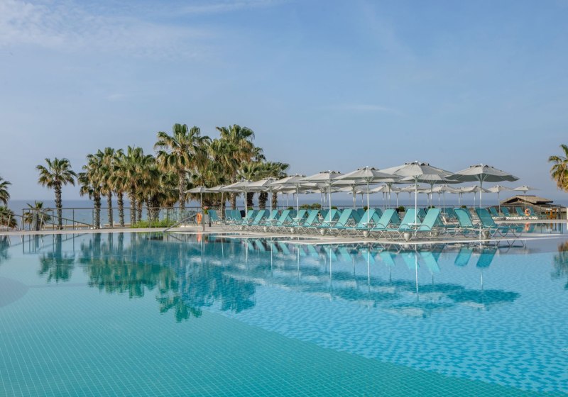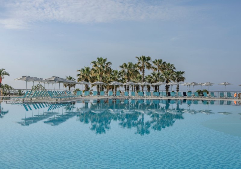 Für Kinder gibt es Splashbecken, Kinderpool, Miniclub und Mini-Disco, während Ihr am Strand mit inkludierten Liegen und Schirmen entspannte Stunden verbringt. Abends wechselt die Stimmung zu lebendig: Shows, Live-Musik und eine Diskothek setzen Akzente. Highlight: Direkte Strandlage mit großzügigen Pools und Aquapark für Familien.