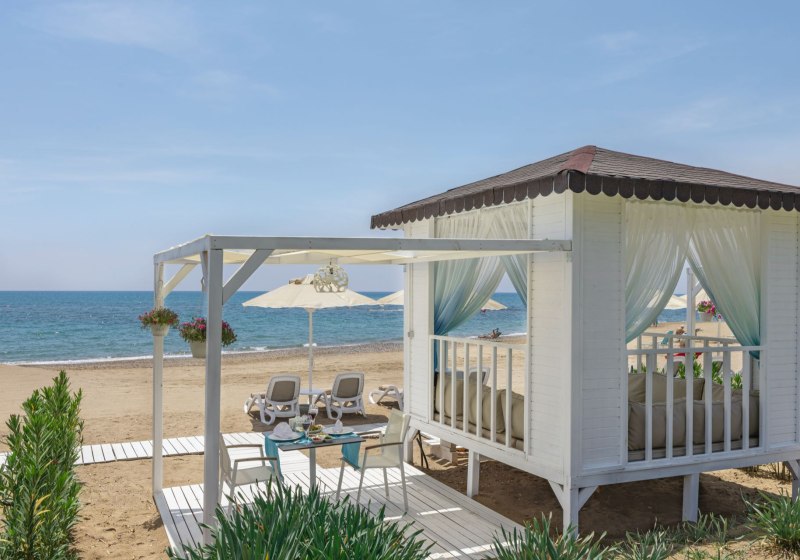 Das Resort liegt im Sorgun-Wald bei Side, direkt am Sand-Kiesstrand. Bis Side sind es etwa 4 Kilometer, nach Manavgat rund 5 Kilometer. Die Strandbar und inkludierte Liegen mit Schirmen erleichtern Euren Tagesrhythmus. Öffentlicher Nahverkehr befindet sich in etwa 30 Metern Entfernung, ideal für kurze Wege zu Ausflügen und Altstadtspaziergängen.