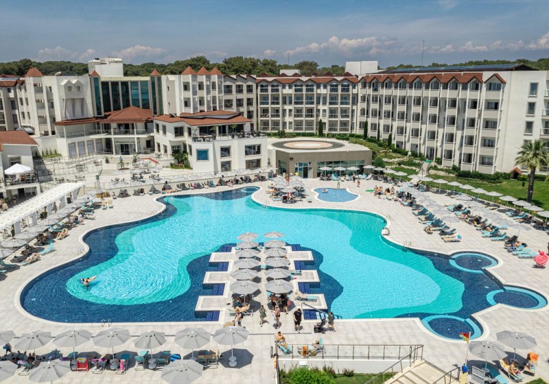 Direkt am Strand des Sorgun-Waldes verbindet das Arcanus Hotels Sorgun familienfreundliche Wasserwelten, klare Sportstrukturen und abendliche Unterhaltung. Die Wege bleiben kurz, das Angebot breit, die Abläufe nachvollziehbar. Kulinarisch wechselt Ihr zwischen Terrasse, À-la-carte und Patisserie, begleitet von All-Inclusive-Plus.