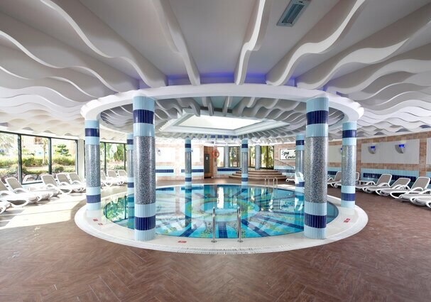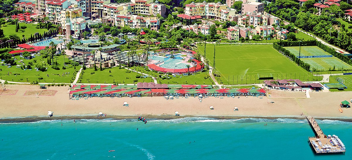 Limak Arcadia Sport & Resort Hotel verbindet direkte Strandlage mit einer klar gegliederten Sport- und Poollandschaft. Familien profitieren von Miniclub, Teens-Bereich und saisonalem Kids’ Aquapark, Aktive von vier Tennisplätzen und einem halbolympischen Becken. Abends tragen Shows, Live-Musik und Disco das Programm.