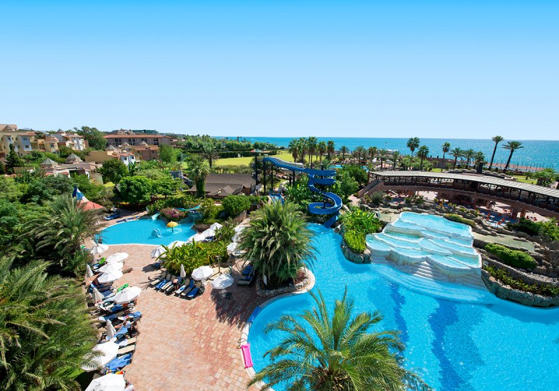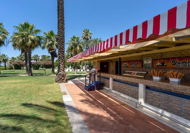 Die öffentliche Fläche ist praxisnah gegliedert: Empfangshalle mit Sitzecken, kurze Wege zu Pools, Restaurants und Strand. Drei Außenpools, darunter ein halbolympisches Becken, zwei Kinderpools und Rutschen (saisonal) bilden das Zentrum. Liegen, Sonnenschirme und Badetücher nutzt Ihr am Pool und Strand, Strandpavillons schaffen geschützte Rückzugsorte. Highlight: Sport- und Familienpool plus Rutschen geben Eurem Tag Struktur und Tempo.