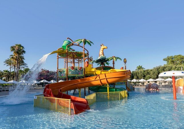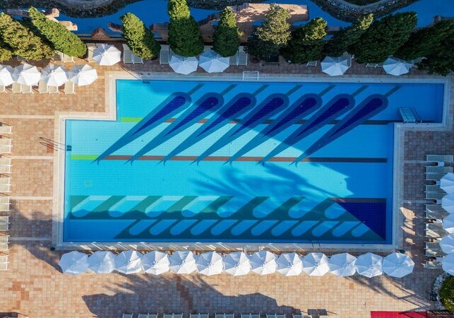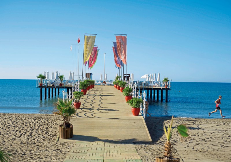 Limak Arcadia Sport Resort Hotel verbindet direkte Strandlage mit einer klar gegliederten Sport- und Poollandschaft. Familien profitieren von Miniclub, Teens-Bereich und saisonalem Kids’ Aquapark, Aktive von vier Tennisplätzen und einem halbolympischen Becken. Abends tragen Shows, Live-Musik und Disco das Programm.