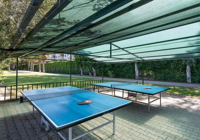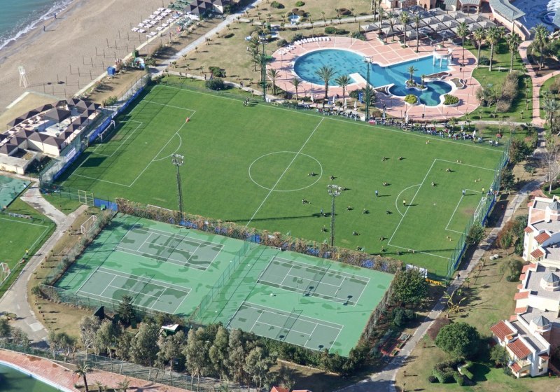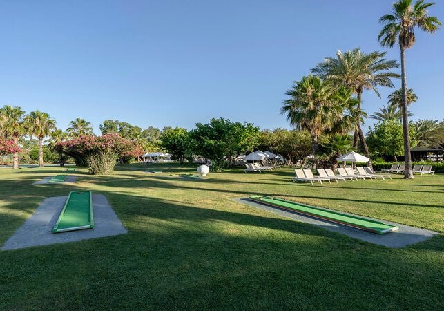 Golfer profitieren von der Lage in einem ausgewiesenen Golfgebiet. Am Strand strukturieren Beachvolleyball-Zonen den Spielbetrieb, während der halbolympische Pool Intervallsets erleichtert. So kombiniert Ihr Ausdauer, Technik und Spielfreude ohne lange Wege, mit planbaren Slots im Tagesverlauf. Highlight: Dichte Sportlandschaft mit kurzen Distanzen zwischen Court, Pool und Strand.