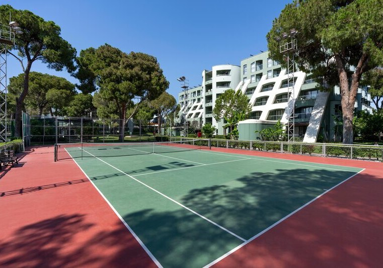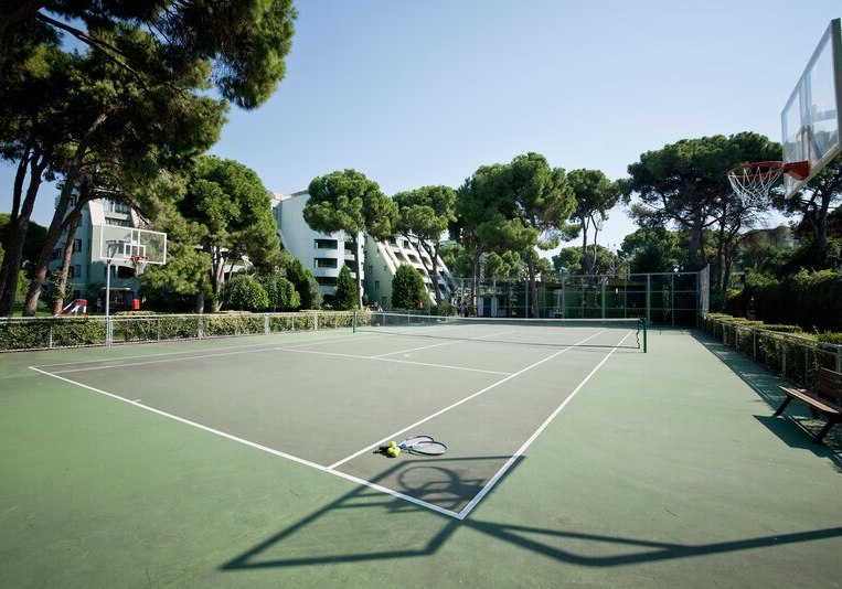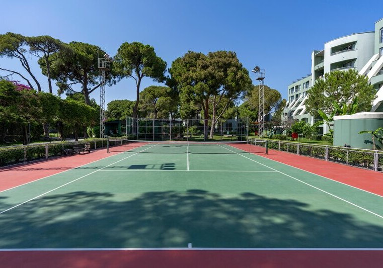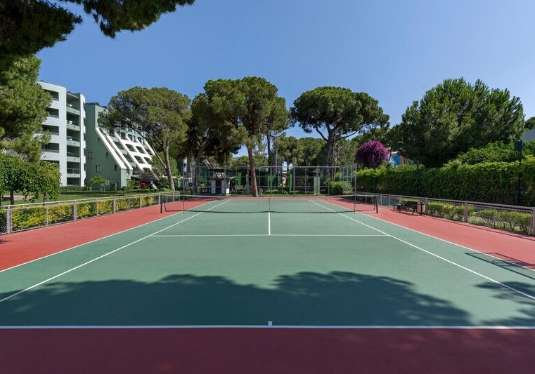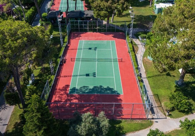 - Court-Zeit: Zwei Tennisplätze mit Flutlicht sowie Beach-Volleyball vor Ort.