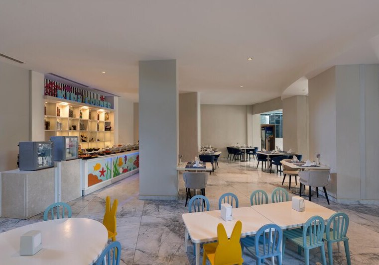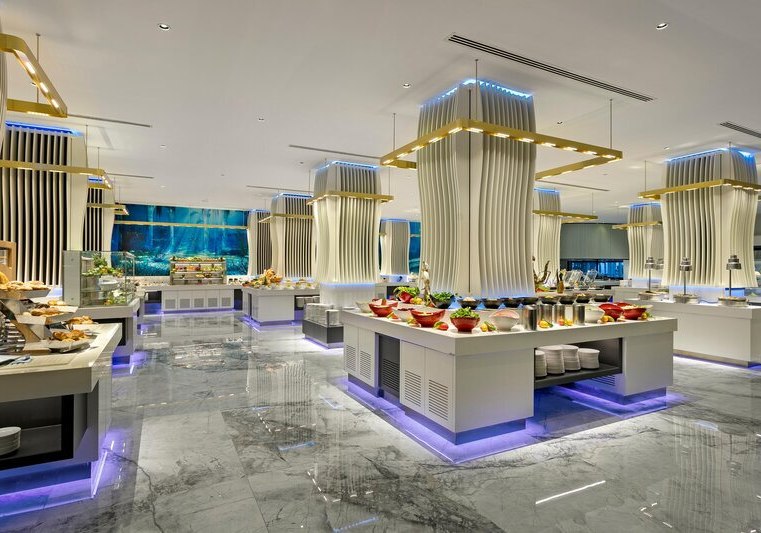 In der Gastronomie erwarten Euch ein großes Buffetrestaurant und mehrere À-la-carte-Optionen. All-Inclusive Plus umfasst internationale Marken, alkoholfreie und alkoholische Getränke, sowie Frühstück, Mittag- und Abendessen, Snacks und spezielle Angebote. Vegane, laktosefreie und Diätgerichte sowie Babynahrung und Kindermenüs sind verfügbar.