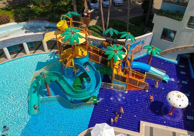 Kinder freuen sich auf Miniclub, Spielplatz, Spielzimmer und Mini-Disco. Der saisonale Kids Aquapark ergänzt mit Rutschenspaß, während der Kinderpool mit Rutschen für altersgerechtes Wasservergnügen sorgt. Highlight: Durchdachtes Programm für alle Altersstufen, von Miniclub bis Showbühne.