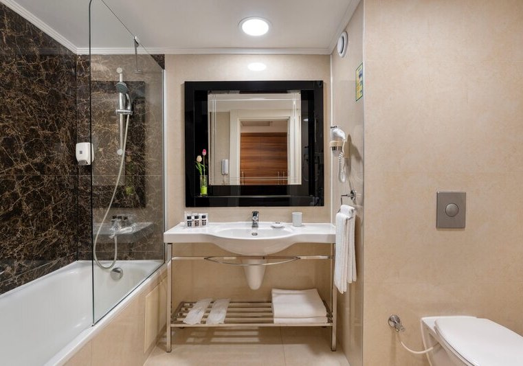 Zimmer• Klimaanlage • Haartrockner • Minibar • Telefon (gegen Gebühr) • Safe • Schlafsofa • Fernseher (Sat-TV) • WiFi • Balkon oder Terrasse • Gartenblick • Poolblick • Babywanne (auf Anfrage) • Wasserkocher • Steckdose • Wohneinheit im Erdgeschoss • Wohneinheit in den oberen Etagen • Wohneinheit in den unteren Etagen • Wohneinheit in Aufzugnähe • Babybett (kostenfrei, auf Anfrage) • Bettwäsche • Verbindungszimmer • Kleiderständer • Badewanne oder Dusche • Kleider-/Wandschrank • Wäscheständer • Balkon (je nach Zimmerkategorie) • Sitzecke (je nach Zimmerkategorie) • Kaffee-/Teezubereiter • Terrasse