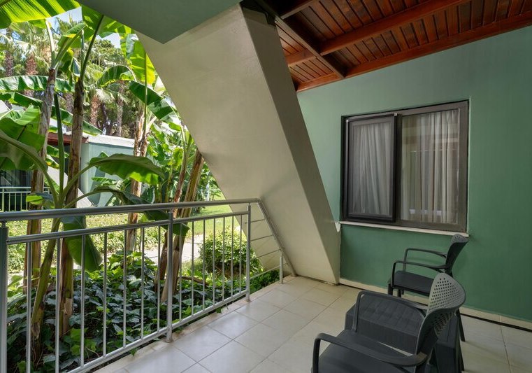 - Angenehme Ausblicke: Zimmer mit Garten- oder Poolblick sowie Balkon/Terrasse.