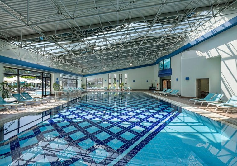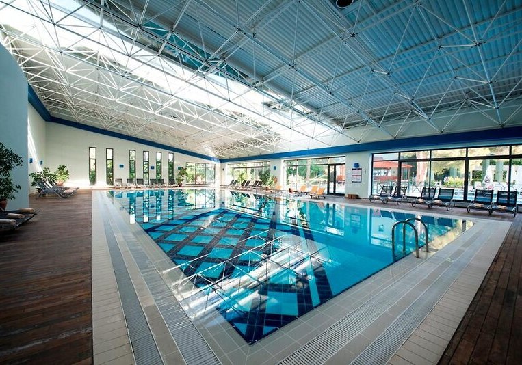Das Spa-Center bündelt Hamam, Sauna und Dampfbad, ergänzt von Massagen, Aromatherapie und Gesichtsbehandlungen. Ein Ruheraum schafft Abstand zum Trubel, während Whirlpools saisonal verfügbar sind. Das Hallenbad bietet 174 Quadratmeter Wasserfläche, Länge 20 Meter und 1,40 Meter Tiefe.
