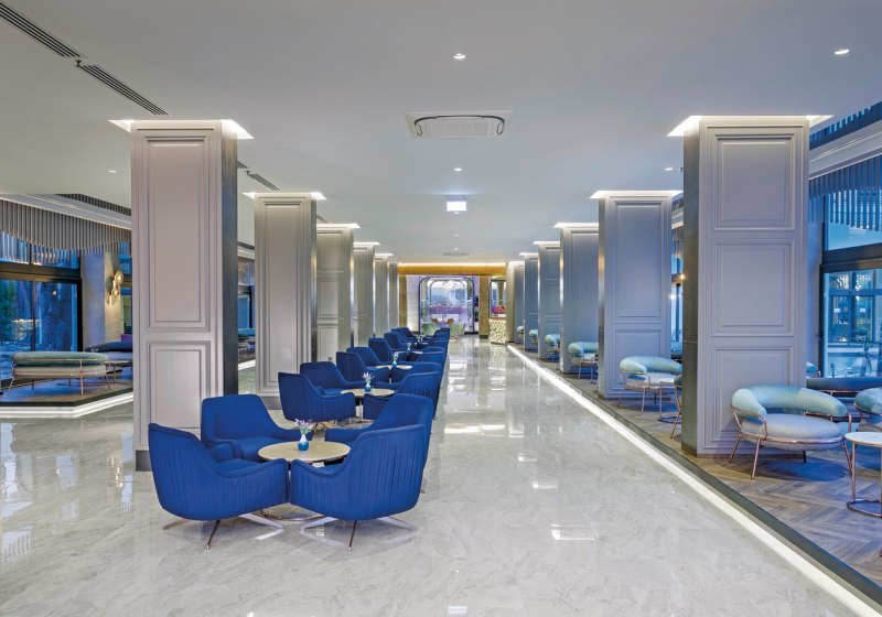 Im Limak Atlantis Deluxe Hotel & Resort wohnt Ihr in einer weitläufigen Ferienanlage direkt am Sand-Kiesstrand von Belek. Die moderne Architektur verteilt sich auf ein sechsstöckiges Hauptgebäude und zwei Nebengebäude mit je fünf Etagen. 373 Zimmer, renoviert im Jahr 2020, bilden den Rahmen für entspannte Strandtage und aktive Stunden am Wasser.