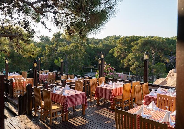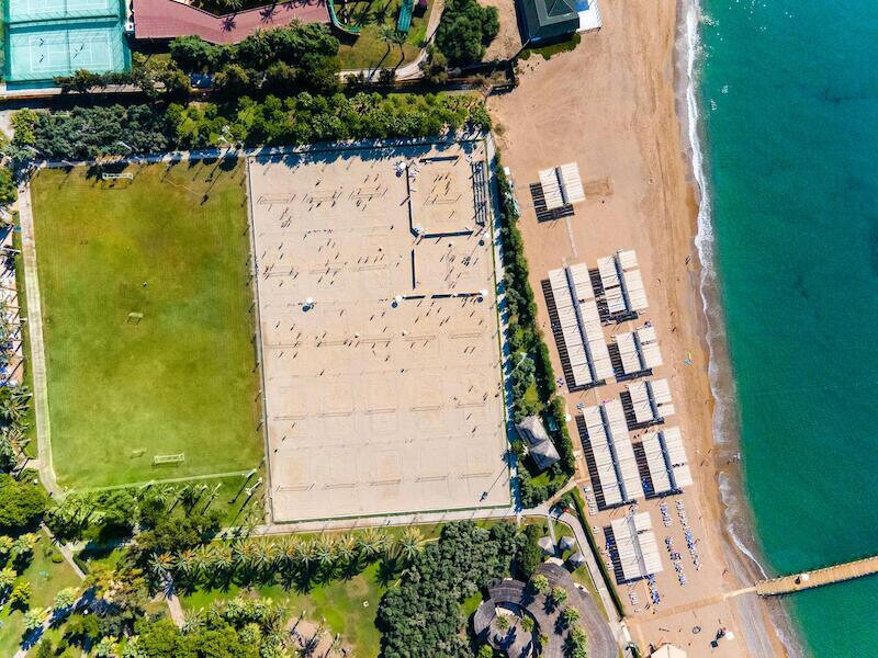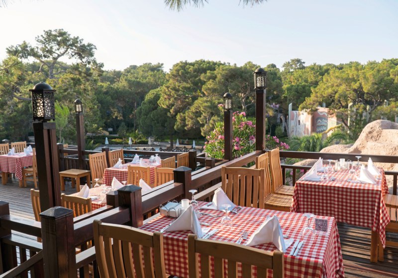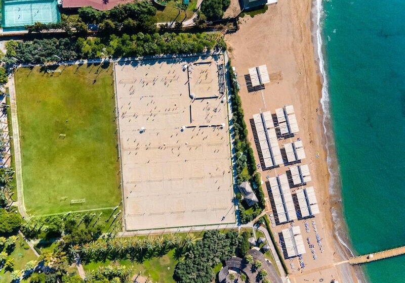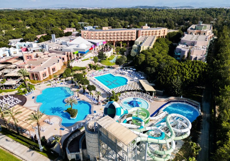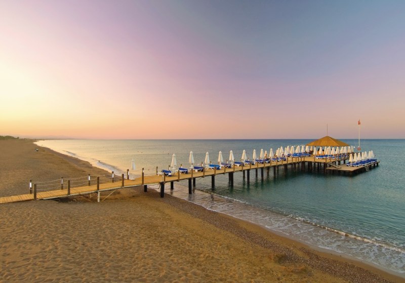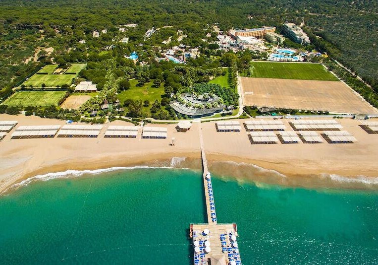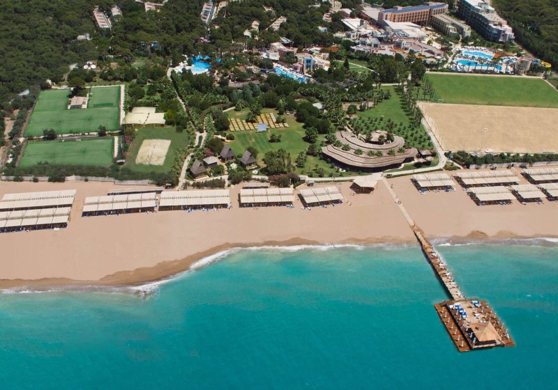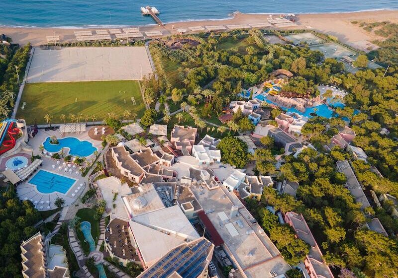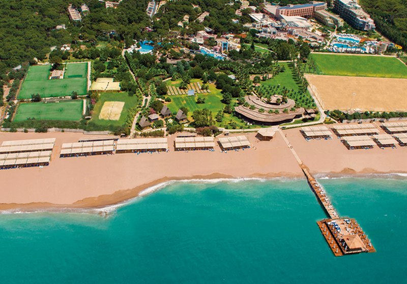 Familien profitieren von Kinderrestaurant, Miniclub, Kinderpools und Rutschen; Aktive von acht Quarzsand-Tennisplätzen, Fitness und Wassersport. Wellness mit Hamam, Sauna, Dampfbad und Anwendungen rundet den Tag ab. Side Altstadt erreicht Ihr in rund fünf Kilometern – Kultur, Meer und Clubleben liegen hier nah beieinander.