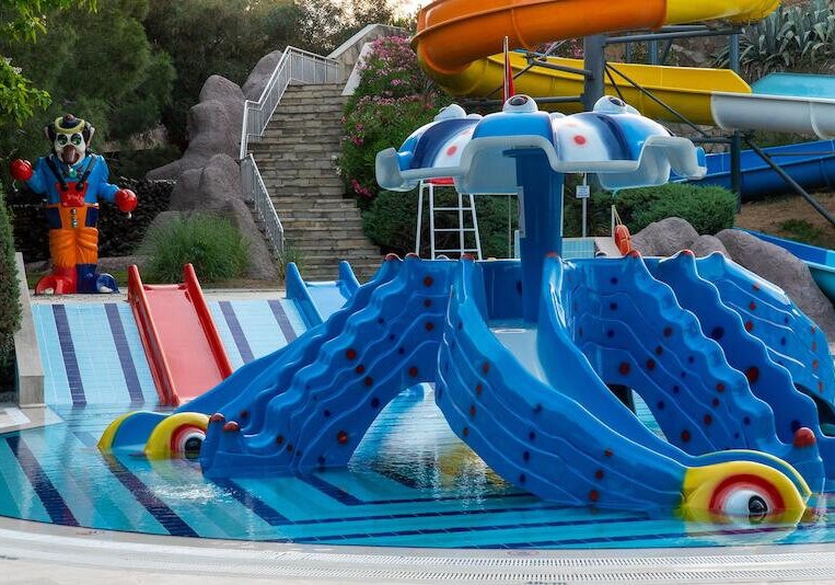 Für Kinder gibt es Miniclub, Mini-Disco, Kinderpools und Wasserrutschen – spielerische Action trifft auf sichere Wasserzonen. Spiele- und Gamingräume, Spielplatz und betreute Angebote fügen sich ins familienorientierte Konzept. Später am Abend lockert die hauseigene Disco den Rhythmus, während die Strandbar das Meeresrauschen hörbar macht. Highlight: Abwechslungsreiche Tages- und Abendanimation inklusive Amphitheater und Livemusik.