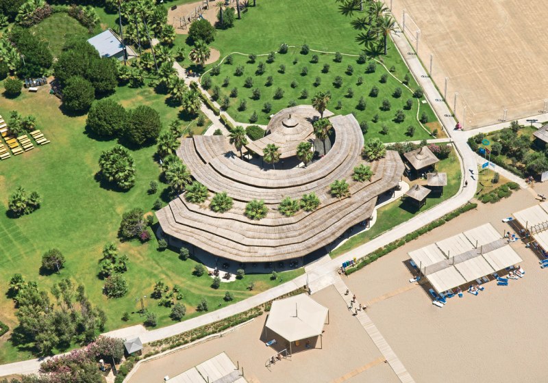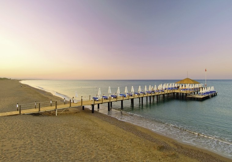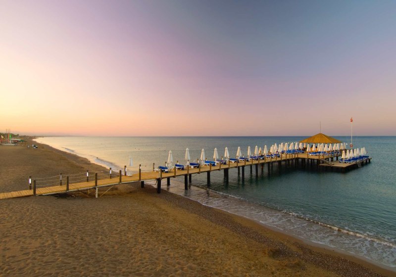 Im Blue Waters Club wohnt Ihr mitten in Sorgun bei Side, direkt am langen Sandstrand und umgeben von Pinienwäldern. Das weitläufige Areal von rund 250.000 Quadratmetern öffnet Raum für Ruhe und Aktivität, für Familien, Paare und alle, die Strandnähe und Clubatmosphäre kombinieren möchten. Die Architektur verteilt sich auf Hotel- und Superiorbereiche mit Aufzügen; Wege führen zu Pools, Gärten und dem Badesteg mit Bar.
