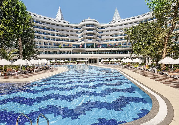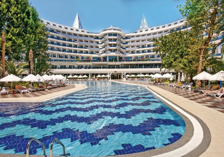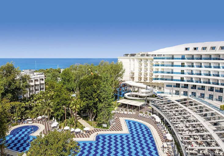 Botanik Platinum Hotel verbindet die direkte Strandlage zwischen Alanya und Side mit einer umfangreichen Resort-Infrastruktur: Pools mit Rutschen, Badesteg, vielseitige Gastronomie, WLAN im gesamten Hotel und ein Programm aus Animation, Shows und Livemusik. Familien profitieren von Miniclub, Kinderpool und kurzen Wegen.