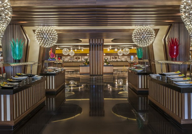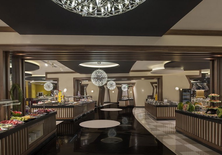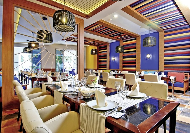 Die All-Inclusive-Verpflegung trägt: Frühstück, Mittag- und Abendessen, Snacks sowie alkoholfreie und alkoholische Getränke sind vorgesehen. Das Hauptrestaurant mit Terrasse bildet die Basis, À-la-carte-Restaurants setzen Akzente, etwa für ein ruhigeres Dinner. Kindermenüs und vegetarische Optionen sind verfügbar, zudem werden Diätgerichte und spezielle Angebote genannt.