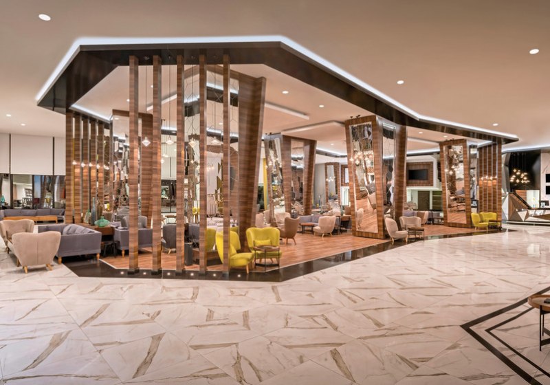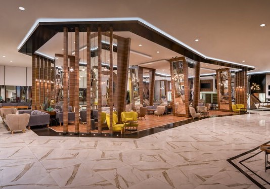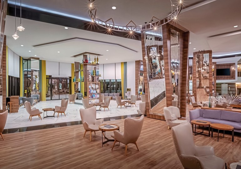 Das Resort ist groß dimensioniert: 447 Zimmer über sechs Etagen, eine Empfangshalle mit Rezeption und Panoramaaufzüge, WLAN im gesamten Hotel. Ihr bewegt Euch durch Garten- und Poolbereiche mit mehreren Süßwasserpools und Wasserrutschen. Shops, Souvenir-Angebote und ein Supermarkt decken den täglichen Bedarf. Ein Theatersaal und Konferenzraum erweitern die Infrastruktur.