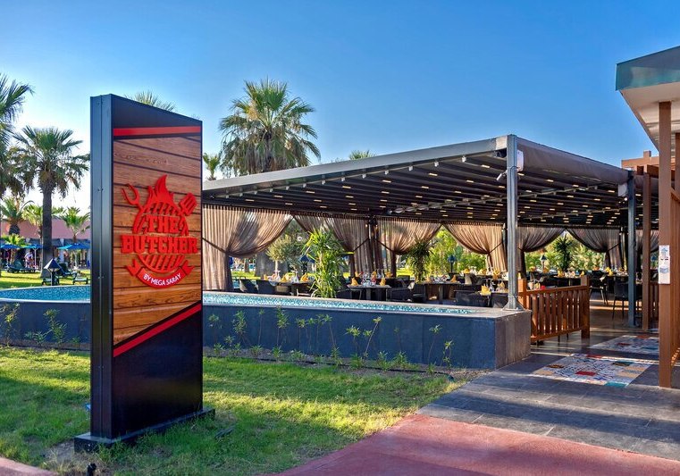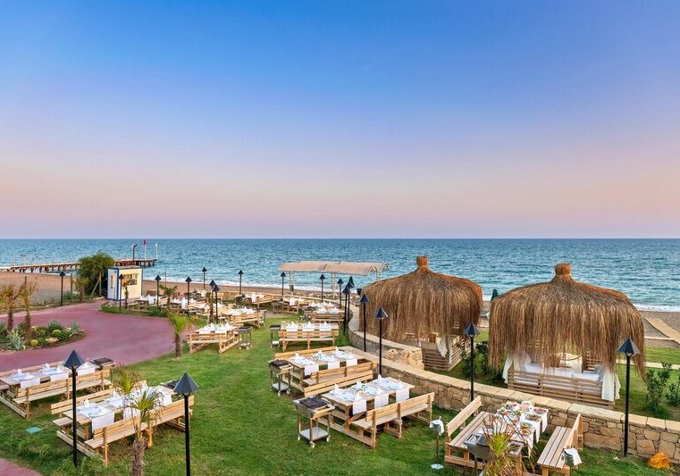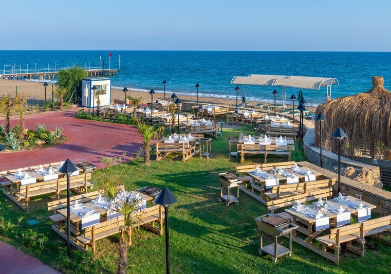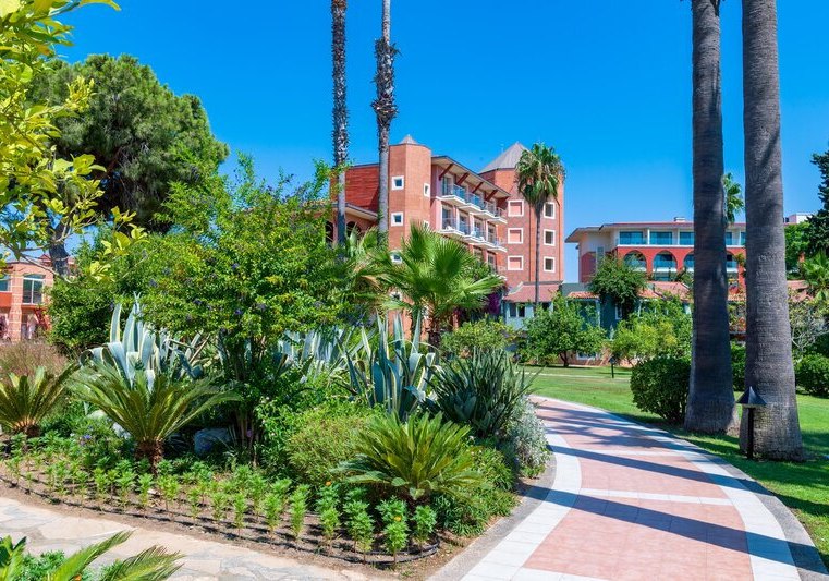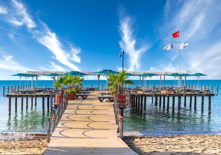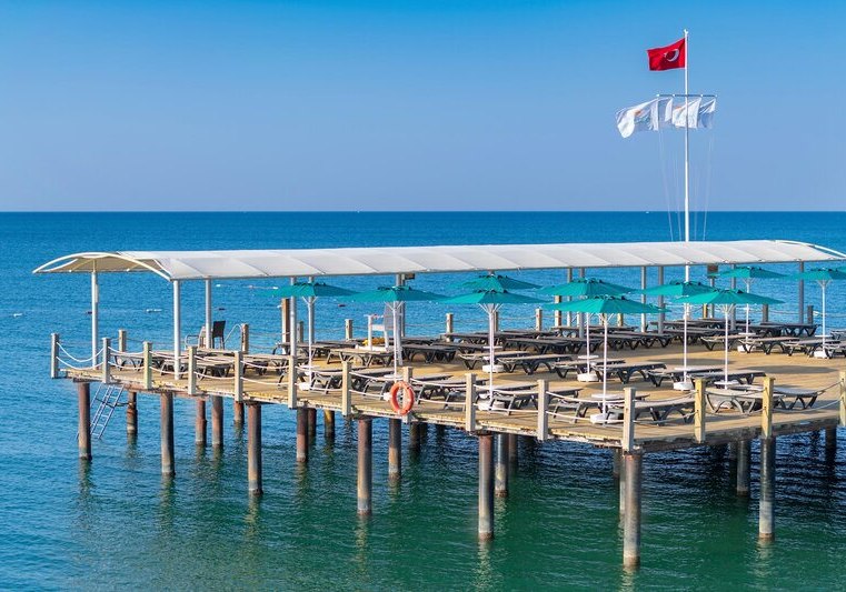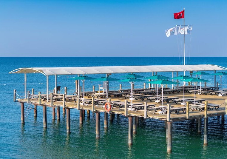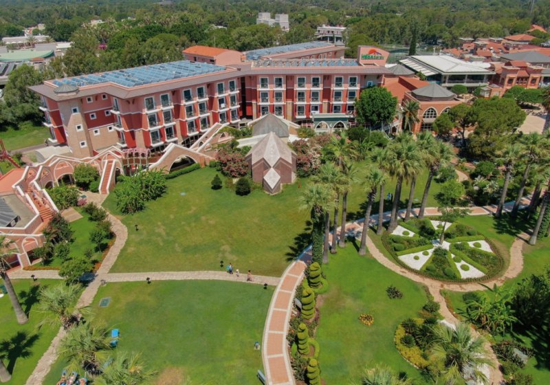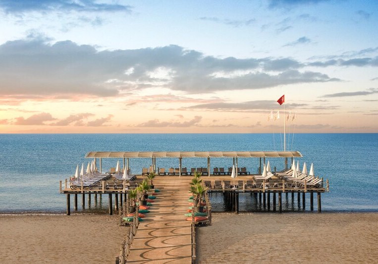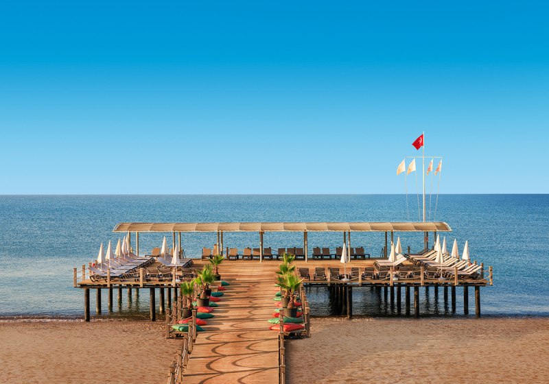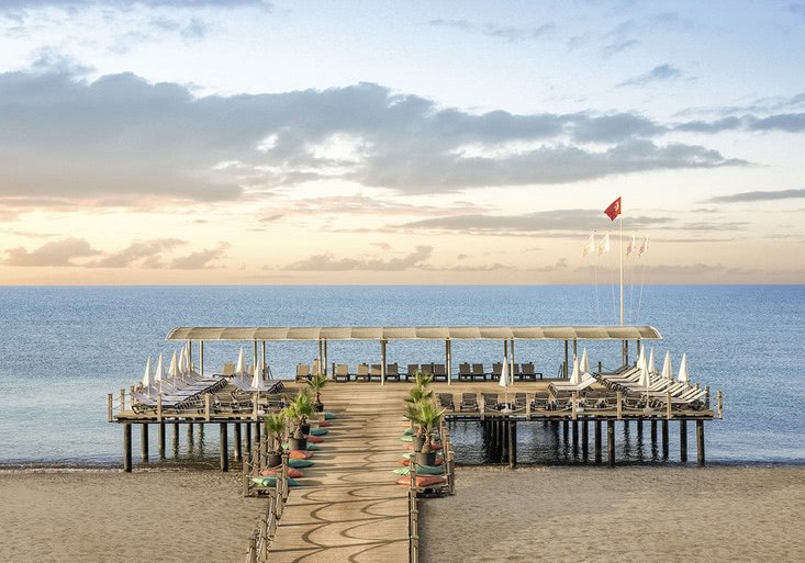 Megasaray Club Belek liegt in Kadriye/Belek direkt am Strand, eingebettet in einen Pinienhain. Ihr erreicht Kadriye nach etwa sieben Kilometern und Belek nach rund zehn Kilometern. Bis Antalya sind es ungefähr 35 Kilometer, zum Flughafen etwa 29 Kilometer. Das Umfeld wirkt ruhig, die Wege zu Stadt und Airport sind klar kalkulierbar.