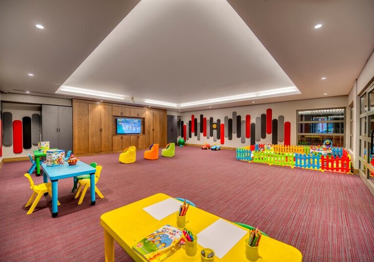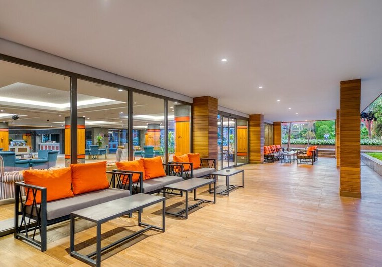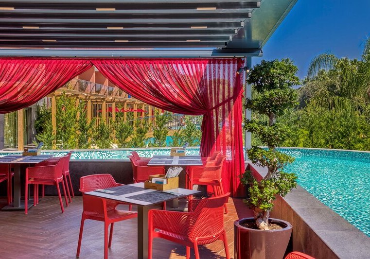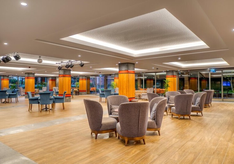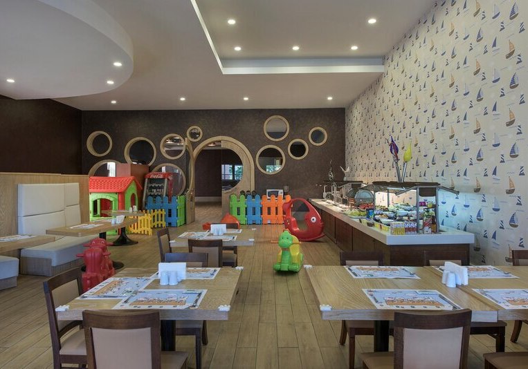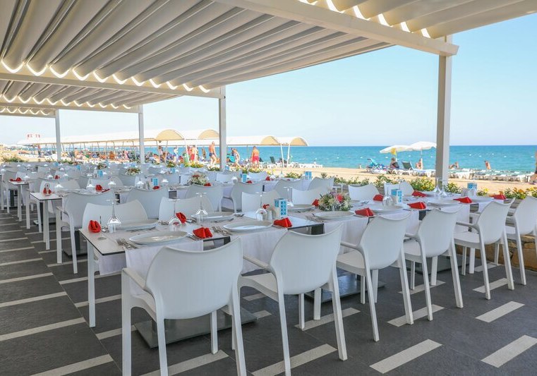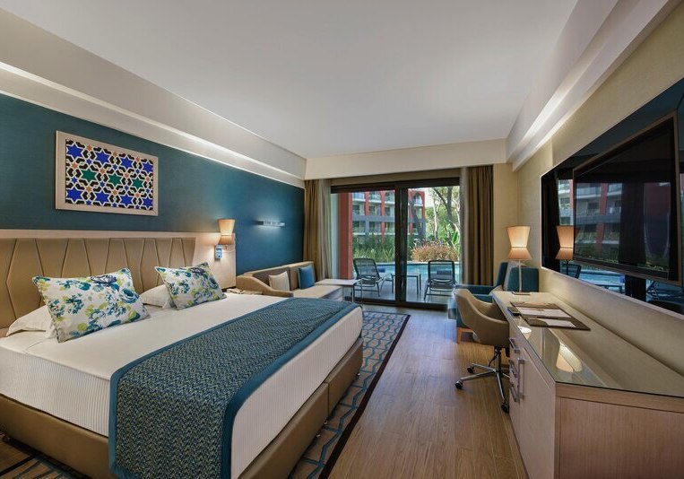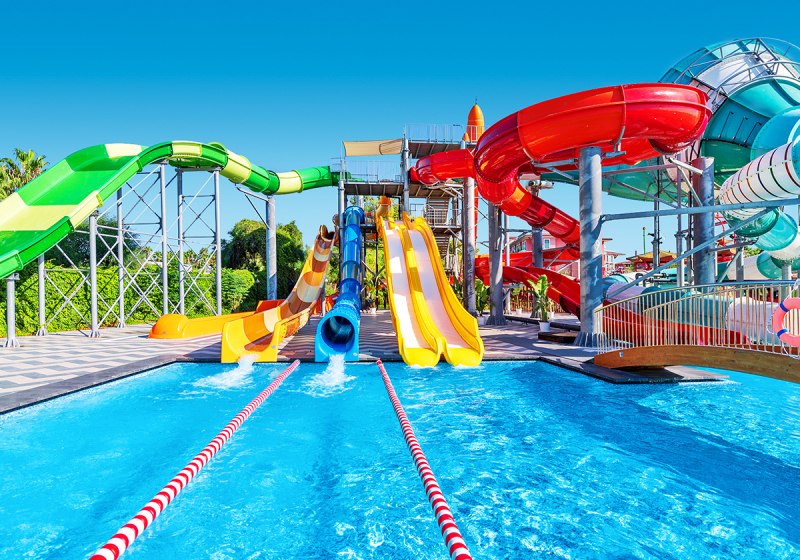 Im Außenbereich warten fünf Süßwasserpools, darunter Relax-, Aktivitäts- und Turkuazpool. Dazu kommt ein Hallenbad. Am Pool und am Strand nutzt Ihr Liegen, Schirme und Badetücher. Der Aquapark mit sieben Rutschen sowie separate Kinderbecken – innen und mit Rutschen – strukturieren Familientage effizient und übersichtlich.