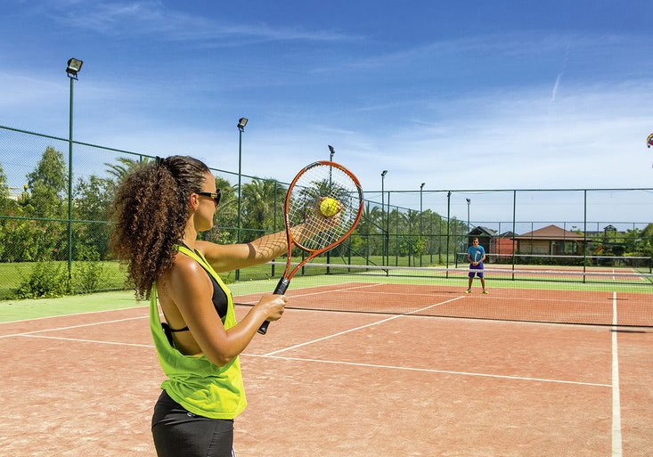Die Sportbasis ist beeindruckend breit: 22 Kunstrasen-/Quartzsand- und 11 Rotsand-Tennisplätze (Reservierung erforderlich) bilden das Herzstück. Dazu kommen Fitnessraum, Spinning-Bikes, Aerobic, Wasseraerobic, Pilates und viele Court- und Präzisionsspiele wie Basketball, Beachvolleyball, Badminton, Tischtennis, Bogenschießen, Darts, Minigolf, Shuffleboard und Mini-Fußball.