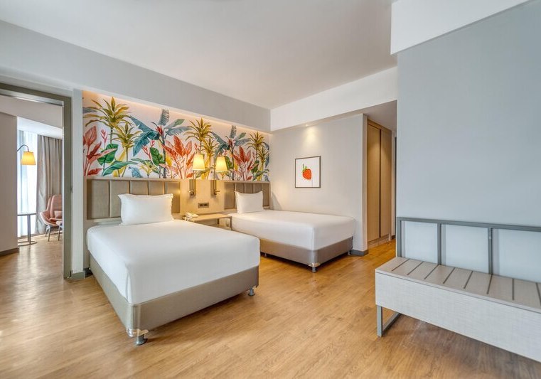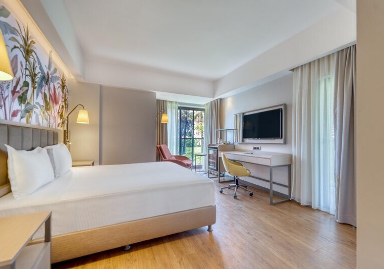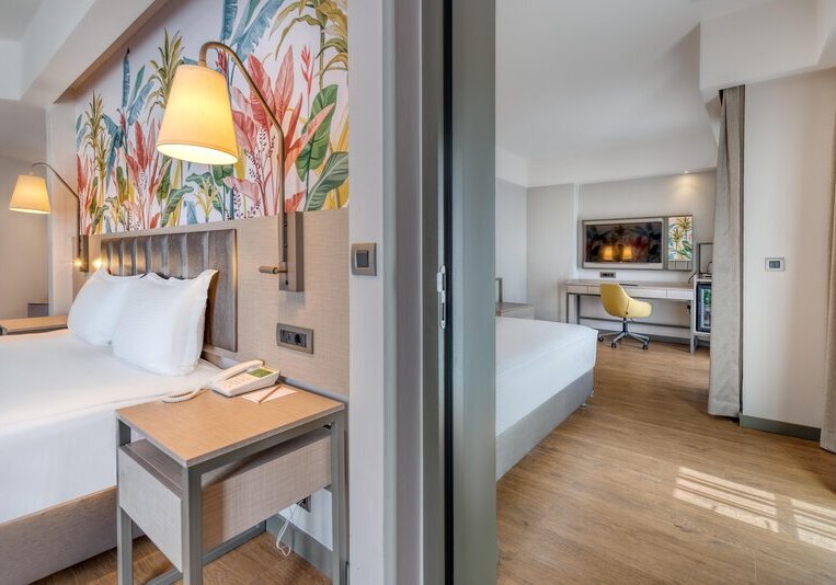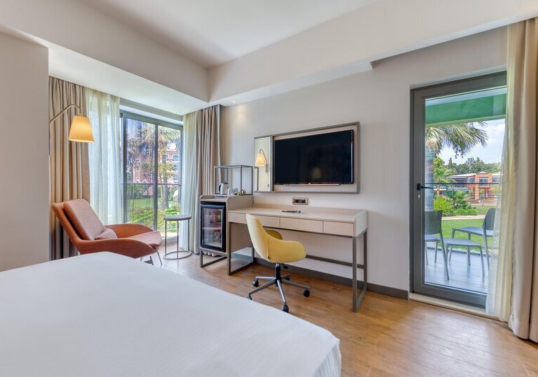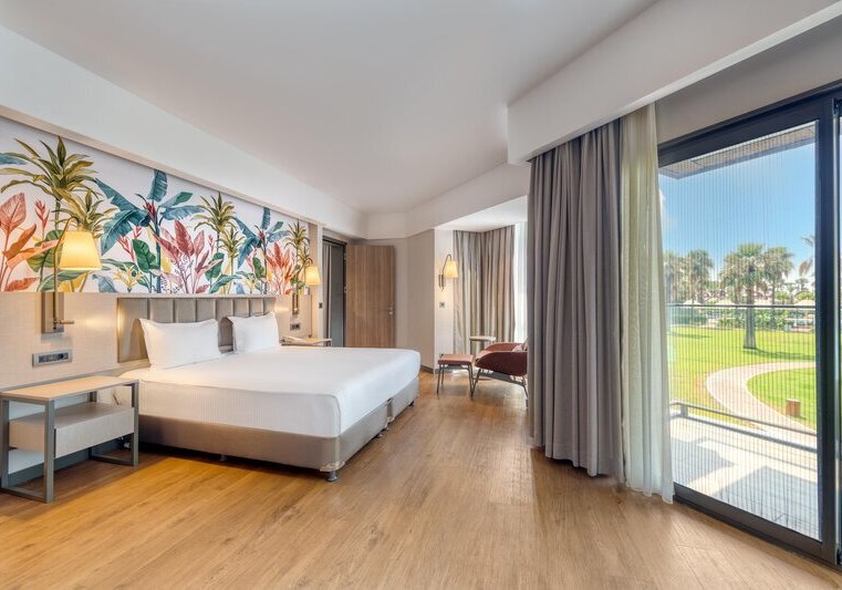 Aus 591 Nichtraucherzimmern wählt Ihr Club-Zimmer in Nebengebäuden, Deluxe-Zimmer im Deluxegebäude, Familienzimmer mit Verbindungstür oder Swim-up Suiten mit direktem Poolzugang. Je nach Kategorie stehen Balkon oder Terrasse bereit, mit Garten- oder Poolblick. Laminat- oder Teppichböden und eine zentrale Klimaanlage setzen klare Standards.