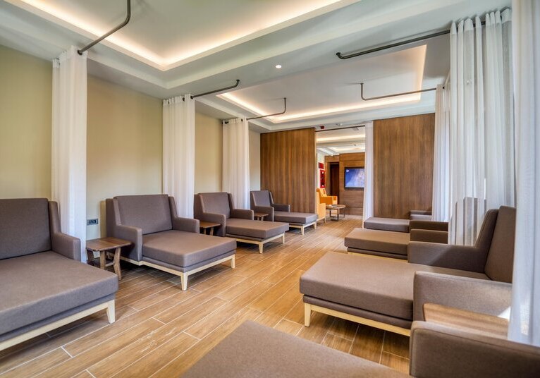 Der Spa-Bereich konzentriert sich auf klare Klassiker. Ihr startet im Türkischen Bad und wechselt in die Sauna, bevor Ihr Euch in Ruhezonen zurückzieht. Die Räume sind funktional und auf Erholung ausgerichtet, ohne überbordende Effekte – genau passend für strukturierte Pausen.