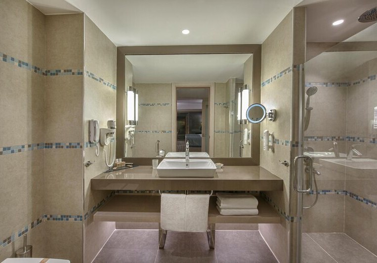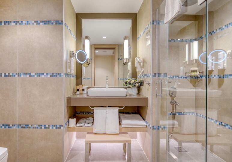 Zur Ausstattung zählen Dusche, WC, Föhn, Safe, Direktwahl-Telefon, LCD-Sat-TV und Minibar. Ergänzend findet Ihr Bademantel, Hausschuhe, Wasserkocher, Kosmetikartikel, Kopfkissenauswahl, Sitzecke, Ventilator, WiFi sowie optionalen Gute-Nacht-Service. So richtet Ihr Euch passend für ruhige Abende, frühe Starts und flexible Tagesabläufe ein.