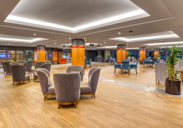 Die Infrastruktur ist breit aufgestellt: WLAN in der gesamten Anlage, eine großzügige Empfangshalle mit Rezeption sowie Geschäfte, Supermarkt und Friseur erleichtern den Alltag. Business-Center, PC-Station und Mietwagenverleih ergänzen das Angebot. Ein hoteleigener Shuttleservice und Parkplätze sorgen für planbare Mobilität.
