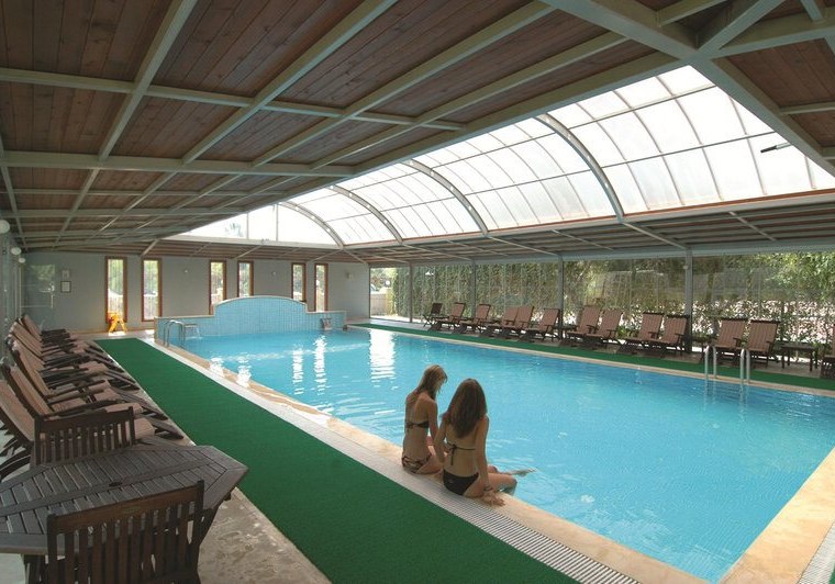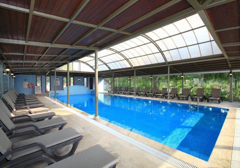 Im Wellnessbereich warten Türkisches Bad, Sauna und Anwendungen wie Massagen. Der Beauty-Salon ergänzt das Angebot um klassische Pflege. Das Hallenbad ist saisonal nutzbar, außerhalb 1.6.–1.10., jeweils in fest definierten Zeitfenstern.