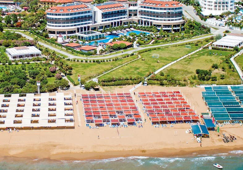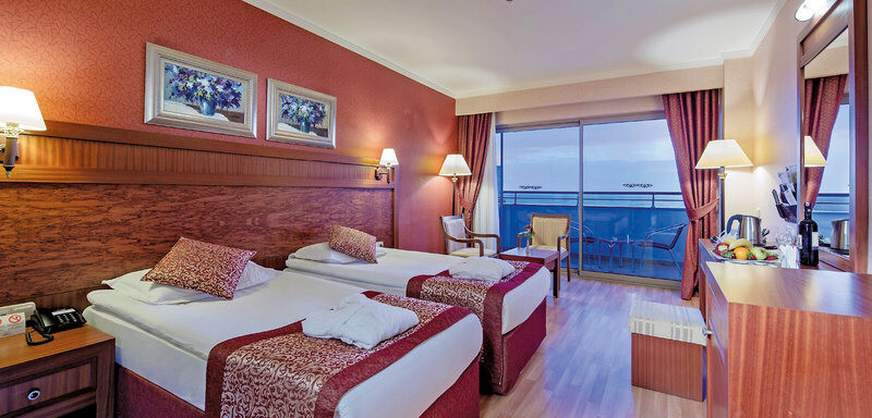 Alba Royal Hotel verbindet die direkte Strandlage von Colakli mit einer klaren Erwachsenen-Ausrichtung. Ihr wechselt zwischen Pool, Meer, Buffetterrasse und leichten Abendprogrammen, ergänzt durch Livemusik. WLAN, nützliche Services und eine Strandbar halten Wege kurz und den Tagesfluss unkompliziert.