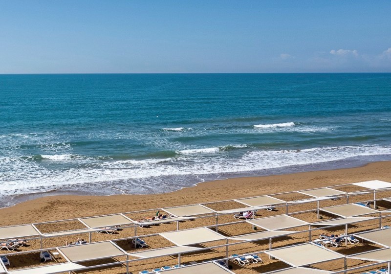 Colakli liegt Euch buchstäblich zu Füßen: Alba Royal Hotel befindet sich direkt am flach abfallenden Sandstrand, ideal für lange Strandspaziergänge und entspannte Badestunden. Bis Side sind es etwa acht Kilometer – ein kurzer Ausflug in antike Kulisse mit Hafenflair. In der nahen Umgebung erreicht Ihr Restaurants und Bars nach rund 200 Metern, Einkaufsmöglichkeiten ebenfalls nach etwa 200 Metern, ein Club liegt circa 500 Meter entfernt. So bleibt Ihr flexibel zwischen Strandtag und abendlichen Abstechern.