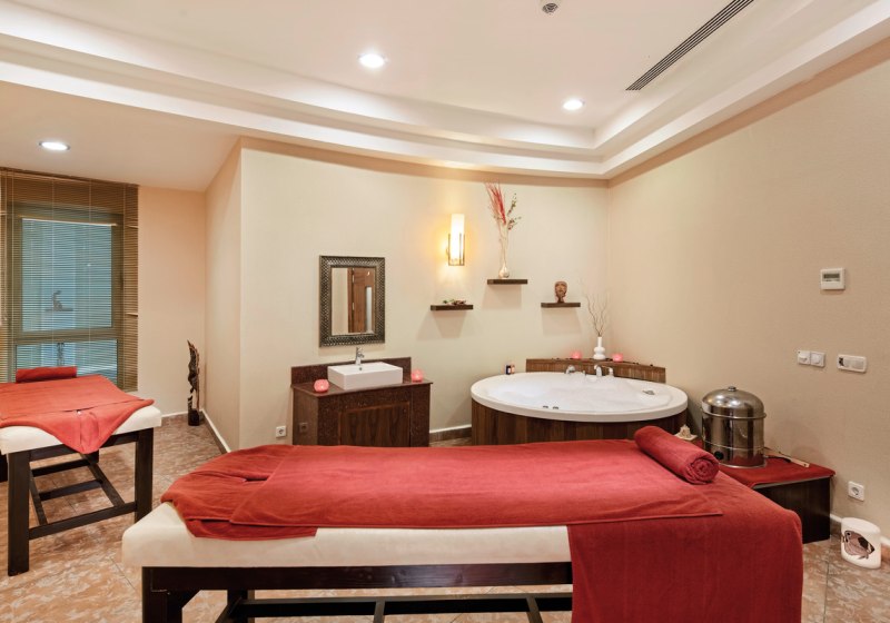 Zimmer mit Meerblick-Option, Superiorvarianten mit Whirlpool-Bad und Suiten mit zwei Schlafzimmern bieten passende Rückzugsräume. Wellness mit Hamam, Dampfbad und Sauna sowie ein breites Sportangebot am Strand und im Haus setzen aktive und ruhige Akzente – ein stimmiger Rahmen für eure perfekten Ferien am Mittelmeer.