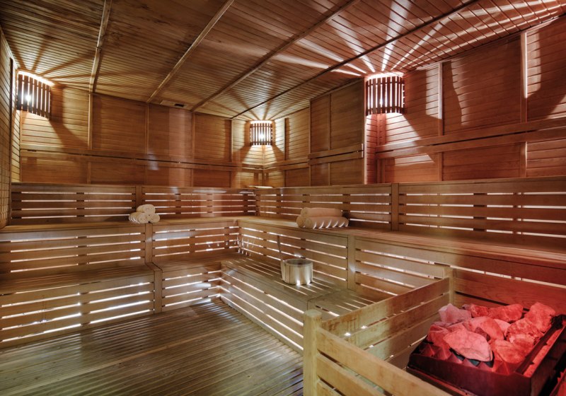 - Sauna: Trockene Wärme als Kontrast zu Pool und Meer.