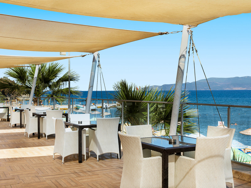 Familien profitieren von Miniclub und weitläufigen Aussenflächen, Paare vom Abendprogramm mit Livemusik und Themenabenden. Die Minibusanbindung Richtung Kusadasi sorgt für kurze Wege in die Stadt, während Ihr am Strand, auf Stegen oder im Hamam den Tag geradlinig ausklingen lasst.