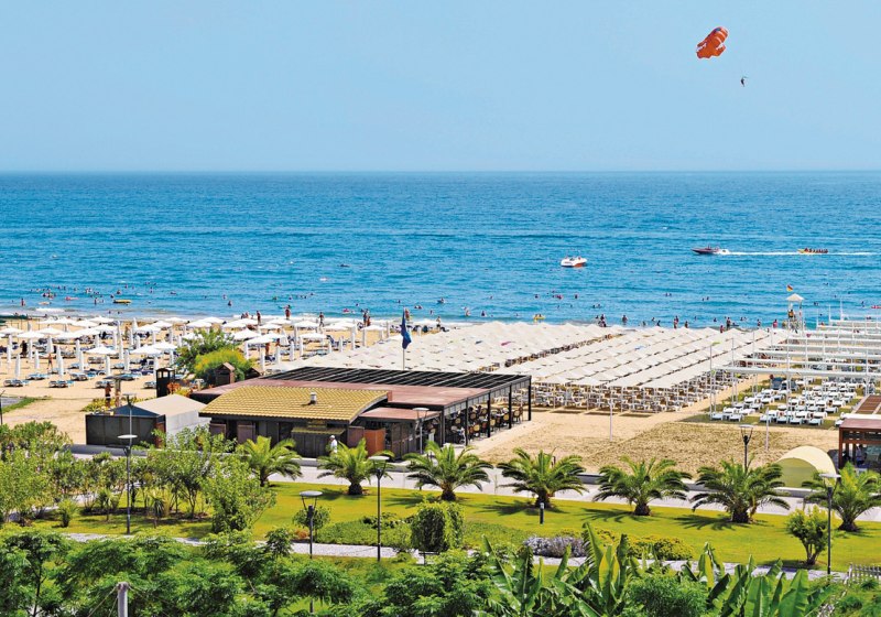 - Eigener Strand: Liegen, Schirme und Badetücher am hoteleigenen Abschnitt.