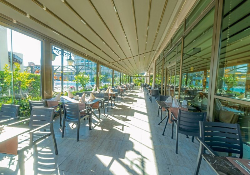 Ihr startet im lichten Empfangsbereich mit Rezeption und Lobby-WLAN inklusive, spaziert über die Sonnenterrassen in den Garten und wählt dann zwischen Strand, Pools oder Spa. Kulinarisch erwartet Euch All-Inclusive bis All-Inclusive Plus mit Hauptrestaurant samt Terrasse, À-la-carte-Optionen, Pool- und Beach-Snackbars, Lobbybar sowie einer Patisserie. Abends sorgt die hauseigene Diskothek für Takt, während das Amphitheater den Rahmen für das saisonale Animationsprogramm gibt. Highlight: Direkte Strandnähe mit hoteleigenem Abschnitt und flach abfallendem Sand.