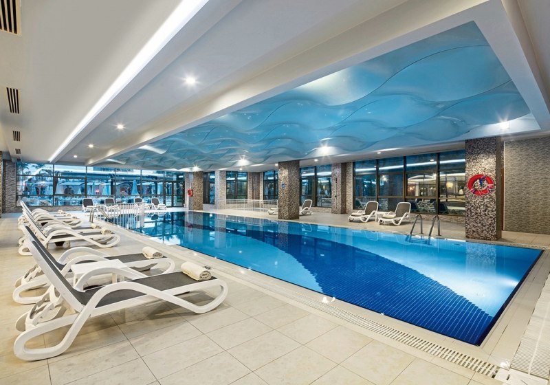 Im Spa- und Wellnesscenter erwartet Euch eine solide Auswahl zur Regeneration: Hallenbad, Sauna, Whirlpool und türkisches Bad/Hamam bilden die Basis. Ein Dampfbad ergänzt das Angebot um angenehm temperierte Entspannung. Die Gestaltung ist funktional und darauf ausgelegt, Abstand vom Strandtrubel zu schaffen.