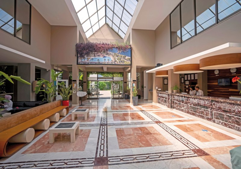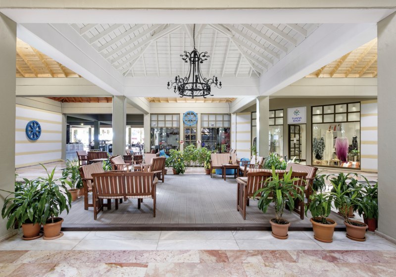 Die öffentlichen Bereiche sind breit aufgestellt: Empfangshalle mit Rezeption, Lounge- und TV-Zonen, gratis WLAN in vielen Bereichen sowie zusätzliche Internetecke. Shops, Friseur, Supermarkt und Souvenirangebote decken den täglichen Bedarf. Konferenzsaal und Business-Center ergänzen das Setting um funktionale Räume.