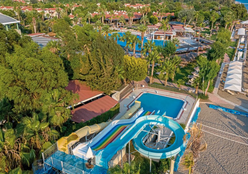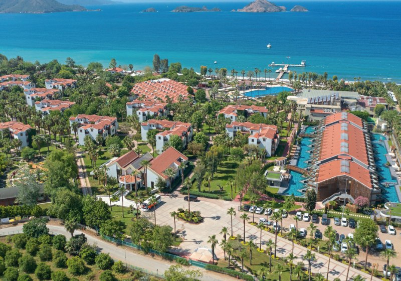 Im weitläufigen Feriendorf-Flair von Club Tuana Fethiye lebt Ihr das Clubgefühl direkt am Sand-/Kiesstrand bei Fethiye. Wege führen durch Gärten zu Pools, Restaurants und offenen Treffpunkten. Tags über lockt das Wasser, abends nimmt Euch das Amphitheater mit. Familien, Strandliebhaber und Clubfans finden hier dichten Programmfluss, ohne dass die Anlage an Übersicht verliert.
