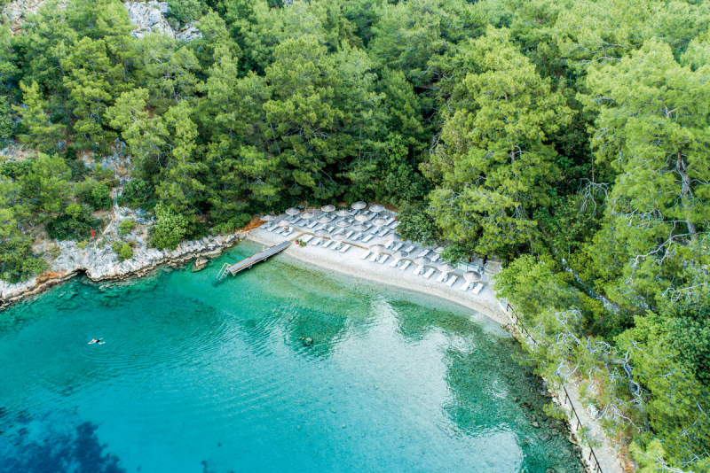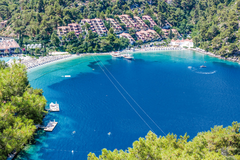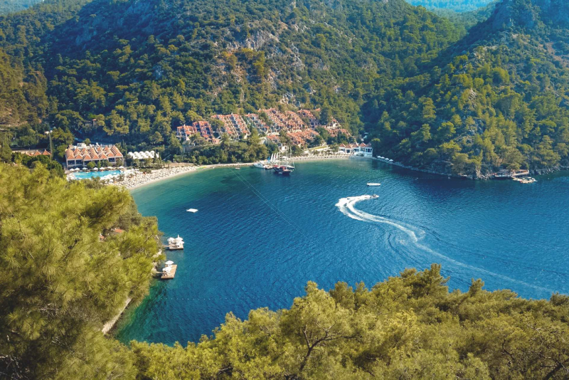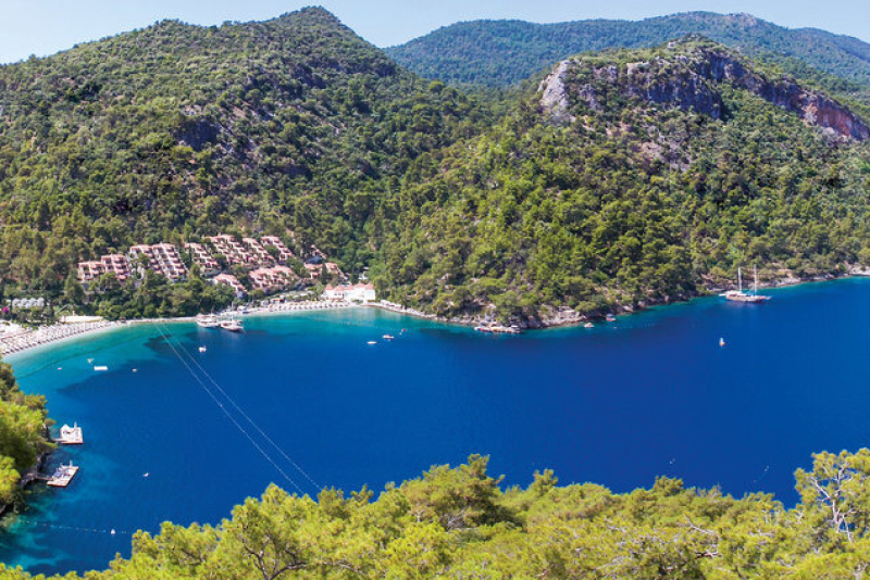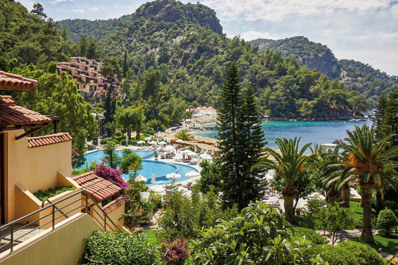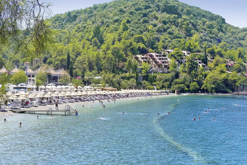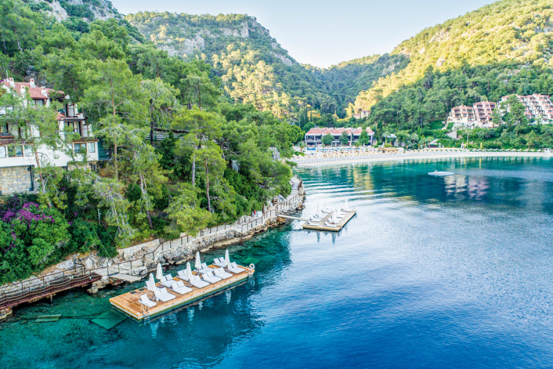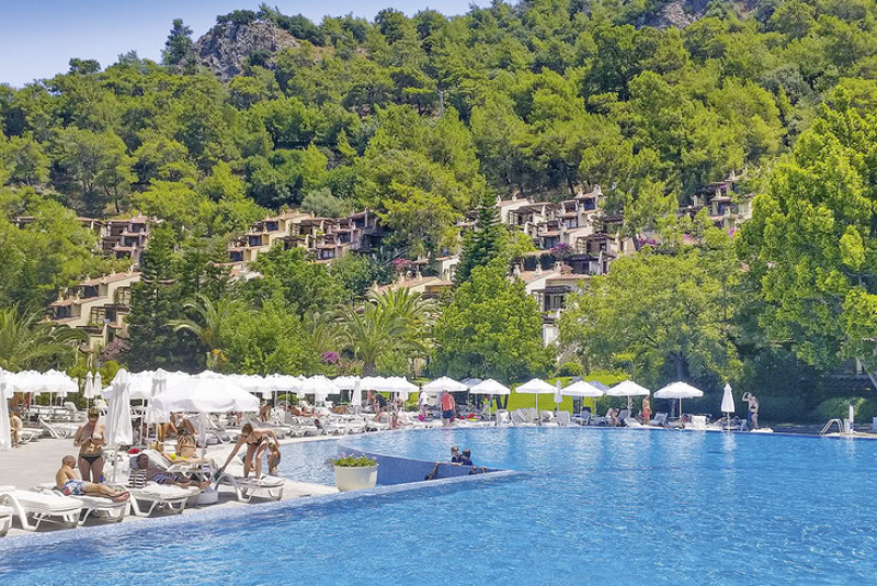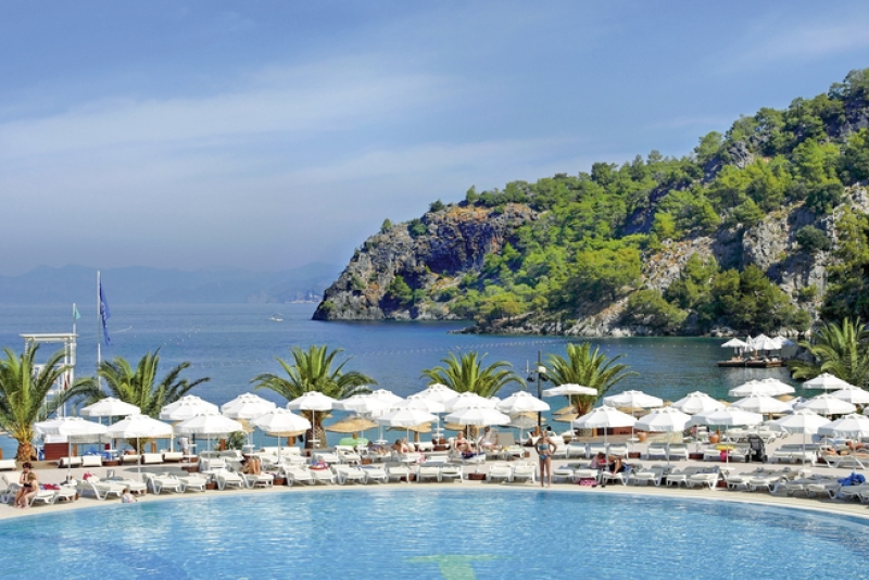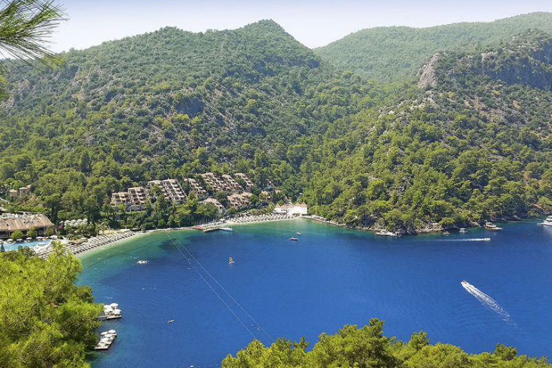 Das Hotel liegt in Hanglage und ist von Wald umgeben, was für erholsame Ruhe und Traumaussichten sorgt. Der hoteleigene Kiesstrand ist nur 15 Meter entfernt und der Flughafen Dalaman kann in 55 Kilometer erreicht werden. Einkaufsmöglichkeiten und Unterhaltungsmöglichkeiten befinden sich in 4 Kilometer Entfernung.